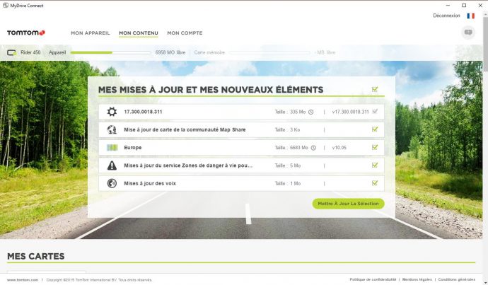 Mise à jour du TomTom Rider par « MyDrive Connect »