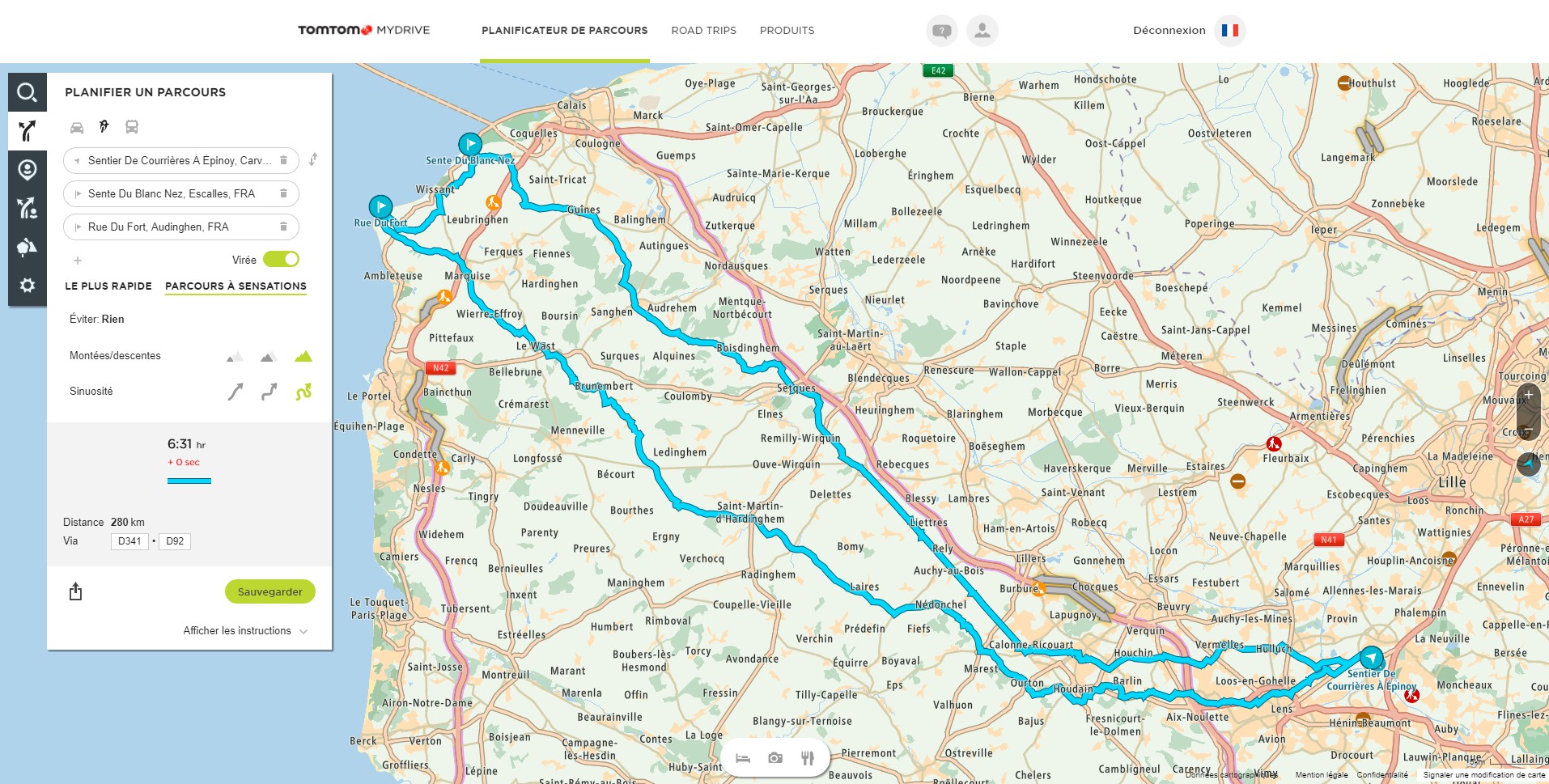 Planification d’une virée, directement téléchargée dans le TomTom Rider 450