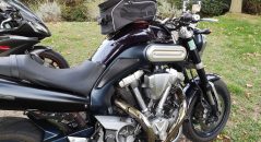 Mais la position adoptée par le pilote sur ce genre de machines impose aussi d’avoir une bagagerie qui s’adapte à la place assez exiguë entre le thorax et le réservoir. A ce sujet, si la sacoche de réservoir Kappa RA311R s’en sort remarquablement bien sur un roadster avec un réservoir pourtant assez haut comme la MT01, c’est plus compliqué sur une sportive comme la R6. En effet, le « bas » du sac est un peu trop en appui sur le haut du ventre.
