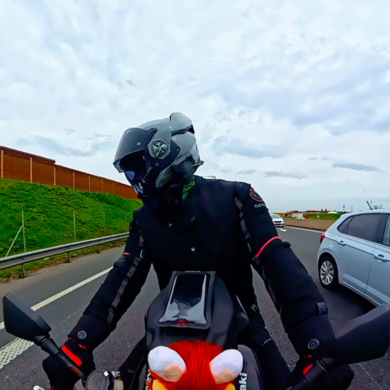 Comme expliqué, j’ai également testé ce casque sur un Goldwing (avec le pare-brise en position basse pour éviter l’effet pare-brise) et le bruit du vent s’est fait beaucoup moins ressentir, même à 130 km/h. Ce qui le place pour moi sur un secteur routier, aussi bien pour le quotidien que les longs trajets.