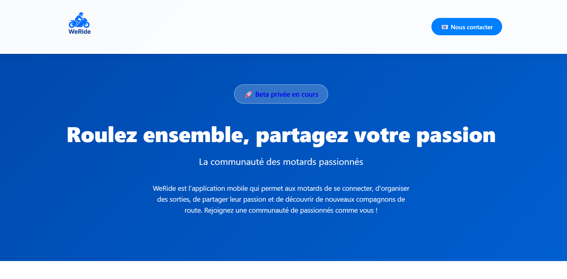 L’application WeRide est une plateforme communautaire dédiée aux motards qui vise à rassembler les passionnés autour de sorties, de discussions et de partage d’expériences. Elle permet de découvrir d’autres motards et de nouer des liens avec ceux qui partagent la même passion et le même style de conduite, ce qui rend les balades plus sociales et conviviales. Avec WeRide, tu peux organiser et rejoindre des sorties moto, planifier des événements de groupe et rester en contact via des discussions en direct ou des chats de groupe, ce qui facilite la coordination entre participants avant et pendant les balades. L’application inclut aussi des fonctions pour partager tes aventures, montrer ta moto et tes itinéraires à la communauté, ainsi que des outils liés à la sécurité comme une fonction SOS et la détection de chute pour rouler plus sereinement.