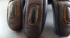 Pour le maintien, celui-ci se fait par une patte de serrage toujours en cuir de chèvre combinée avec une boucle en laiton. Ce qui augure une bonne durée de vie et pas de desserrage intempestif. La manchette est courte et de petit diamètre. Sur ma moto avec un guidon ape hanger, un espace subsiste. J’ai donc réitéré l’essai sur la CB500x d’un collègue et une Africa Twin et la manchette et suffisamment longue pour vous protéger. La texture interne est douce et confortable. Par contre on ressent les coutures au niveau des doigts donc ce n’est pas plus mal qu’ils taillent grand car s’ils étaient vraiment juste mon avis aurait probablement été différent…